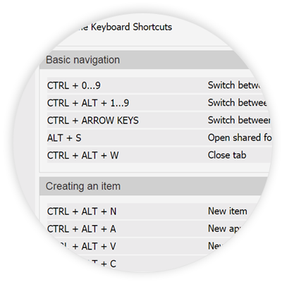 Convenience at its best: create, use and manage your contacts from one spot. Contact lists can also be shared across your organization. And every contact will be available throughout WebApp, such as when you are sending an email or when you are opening a shared folder. In addition, you can make use of a global address book that integrates smoothly with your LDAP.